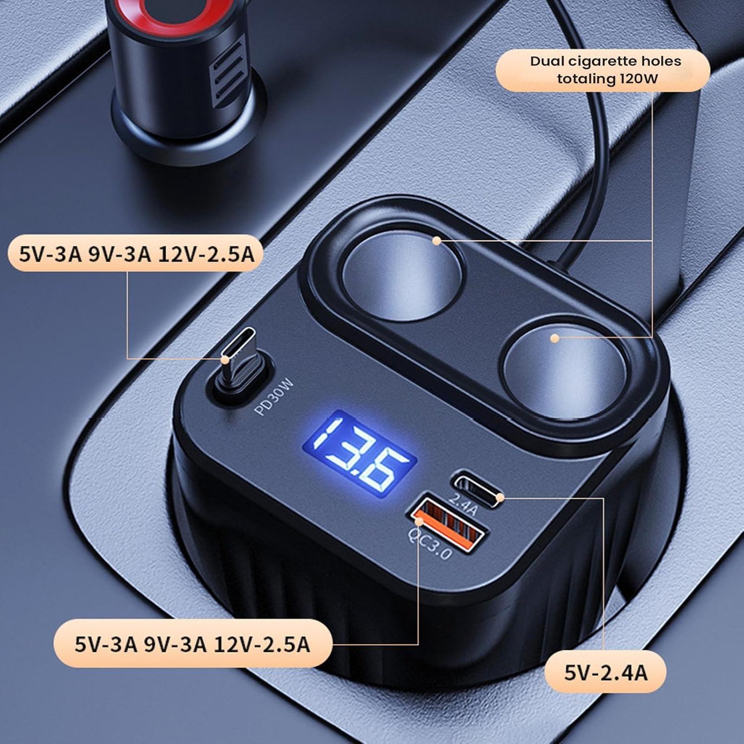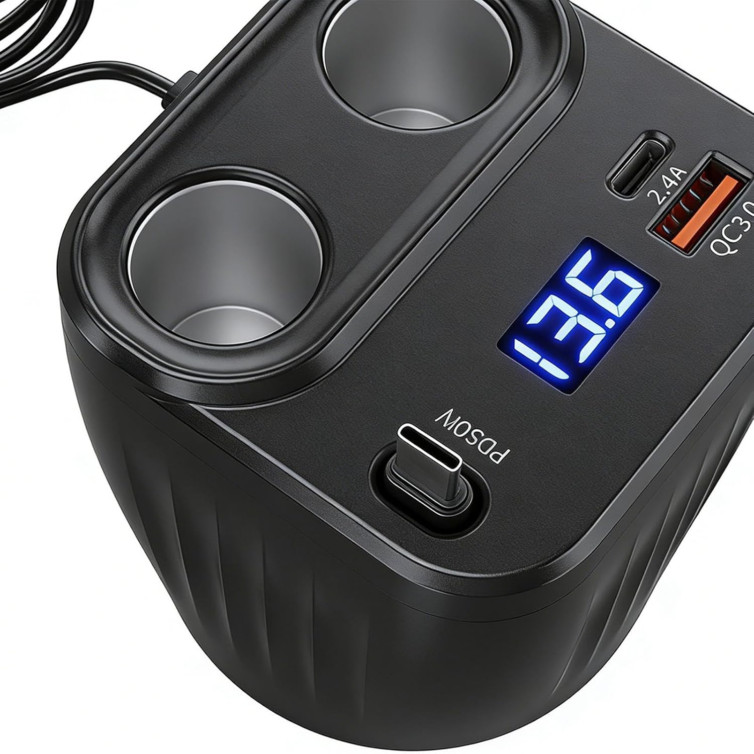 Stable Anti-Slip Design: The car charger adapter features anti-slip padding that ensures a secure cupholder fit, keeping the adapter steady on bumps and during sudden stops, providing reliable charging without interruptions while driving on uneven roads or during long trips