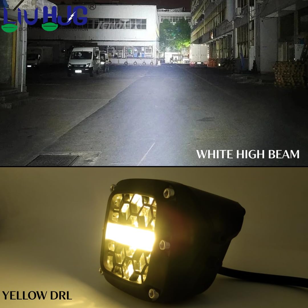 Dual Lighting Functionality:- Combines White High Beam + Yellow DRL in a single compact unit. Perfect for night riding, foggy conditions, and daytime illumination without needing separate lights.