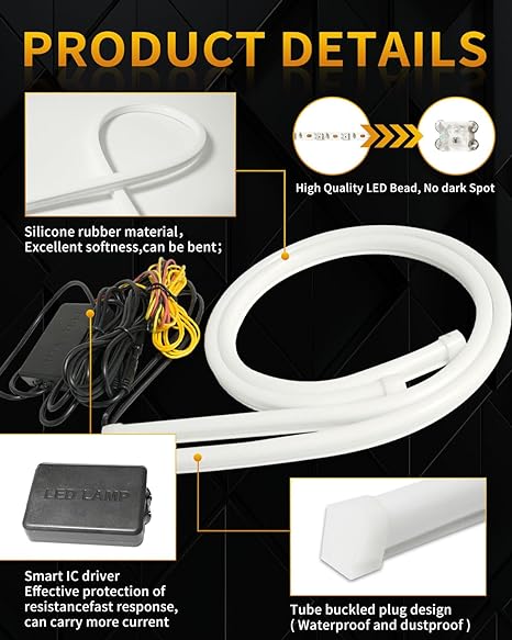 🛑 High Quality LEDs: The car led headlight strip adopts import lights core, pure high brightness, quality assurance, last long time. It can increase the lighting of the car at night, strengthen the driving safety warning or turn signal in the dark or bad weather,
