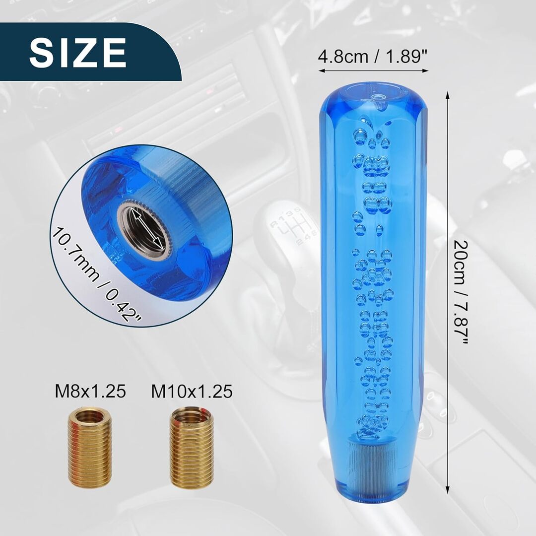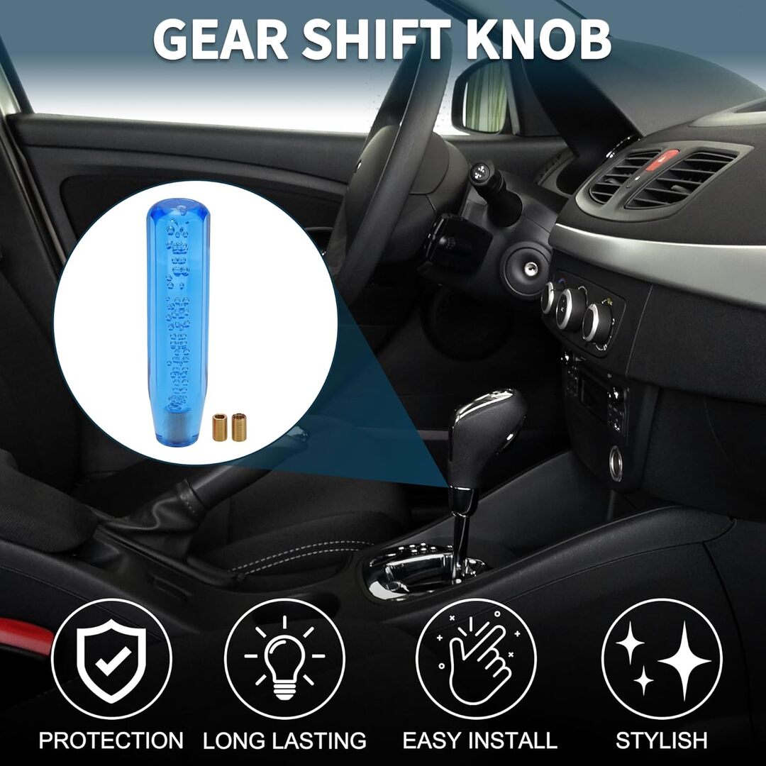 Universal Shift Knob Stick---- Car Universal Red Shift Knob Stick Crystal Transparent Bubble Clear, the size is about 15cm/5.9in, suitable for most manual shift vehicles