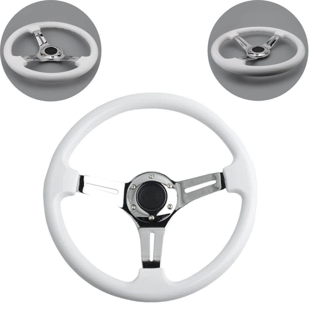 Universal Semi Dish White Chrome Steering Wheel In Premium Quality For Car 1 Pc