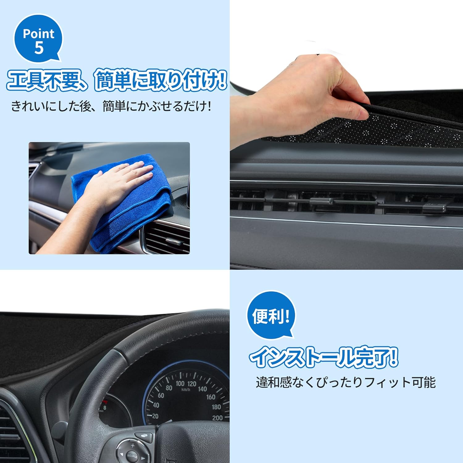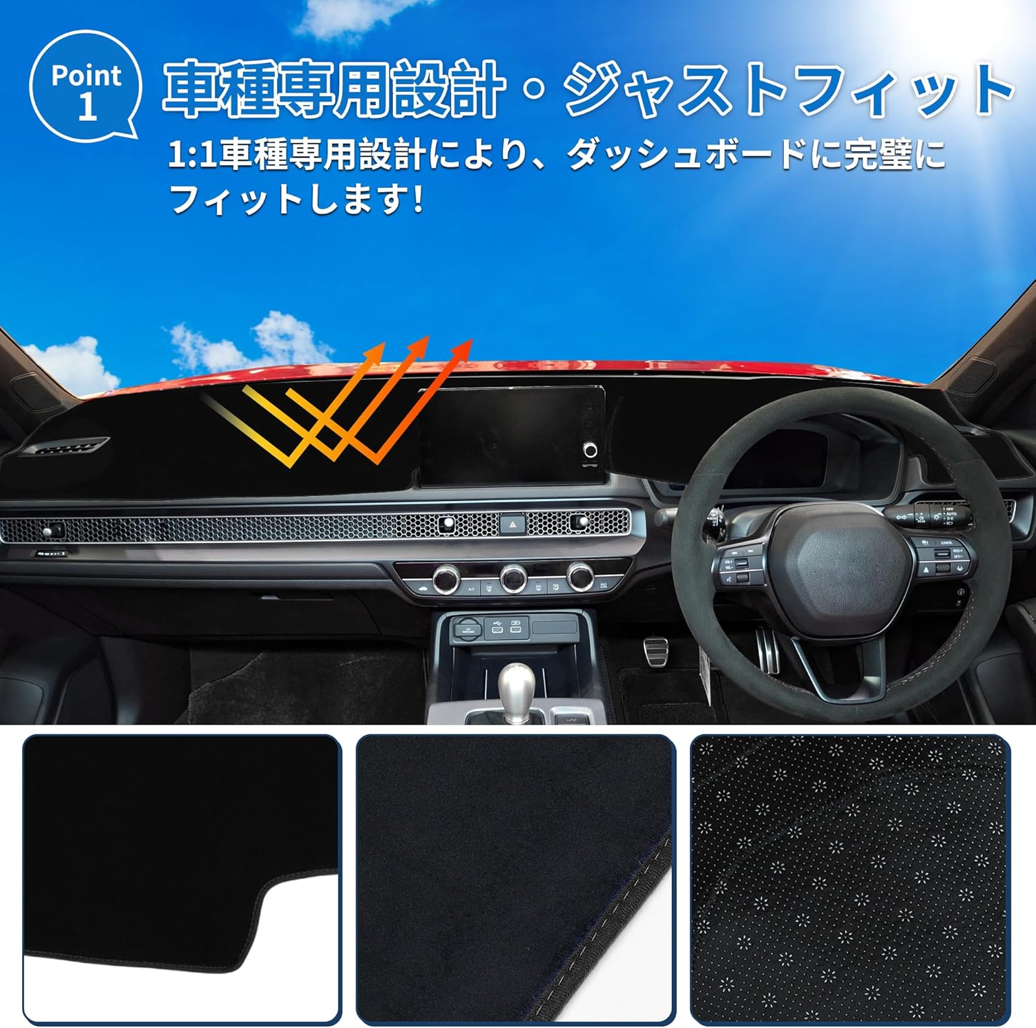 Ultra-Matte Premium Velvet: Crafted from high-density, non-reflective velvet that effectively eliminates "windshield bounce-back" glare. This ensures maximum visibility and a safer driving experience during peak sunlight hours.