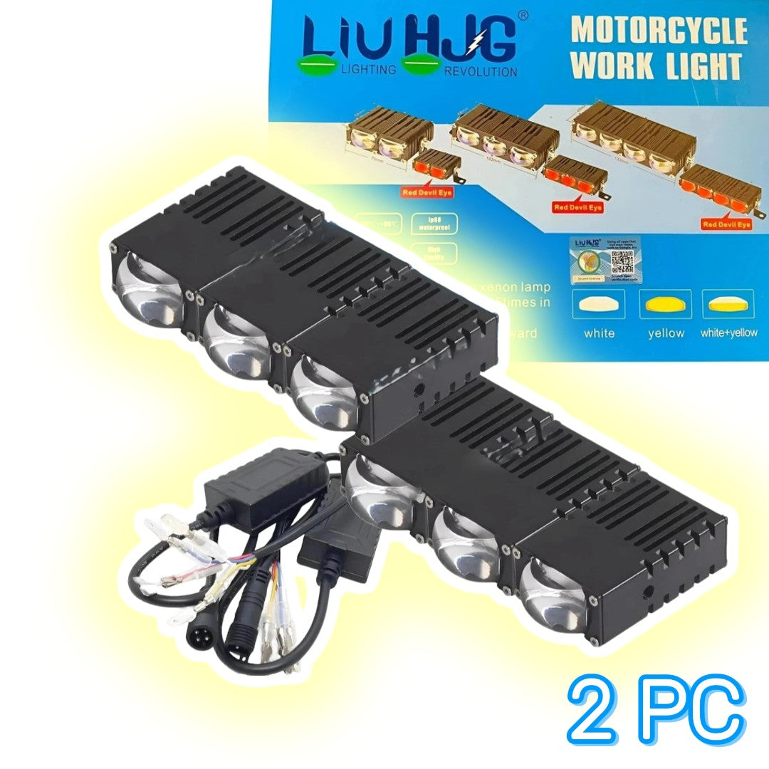 2 pcs Set HJG 3 Lens Super Slim High Power Devil Eye 120W Landscape Style Grill LED Fog Light for Car