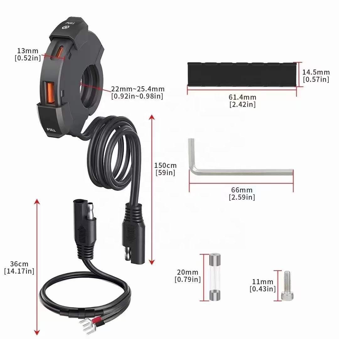 Designed for compact sizes, this double motorcycle charge socket does not take up much space on your motorcycle and has an elegant design with protective cover to keep your motorcycle aesthetic.