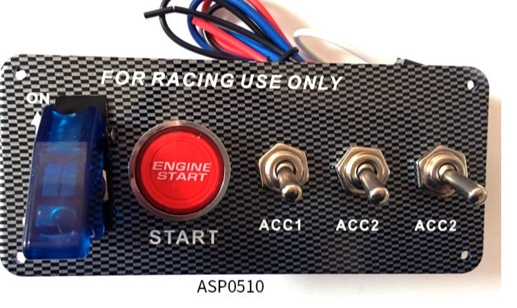 2. 5in1 Button and Switches: 1 ON OFF toggle switch, 1 red engine start button and 3 toggle switches for extra use; a relay is included to control the buttons for this item.
